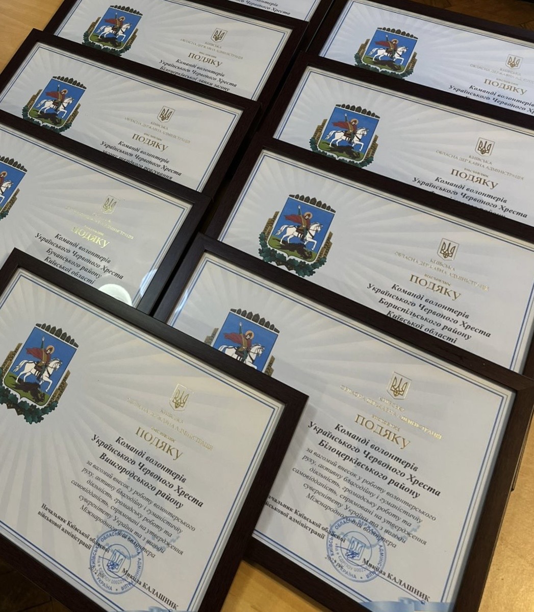 Команда Київської обласної організації Товариства Червоного Хреста України отримала подяки за вагомий внесок у розвиток волонтерського руху, активну благодійну та гуманістичну діяльність, громадську роботу та самовідданість, спрямовані на утвердження суверенітету України, а також з нагоди Міжнародного дня волонтера.